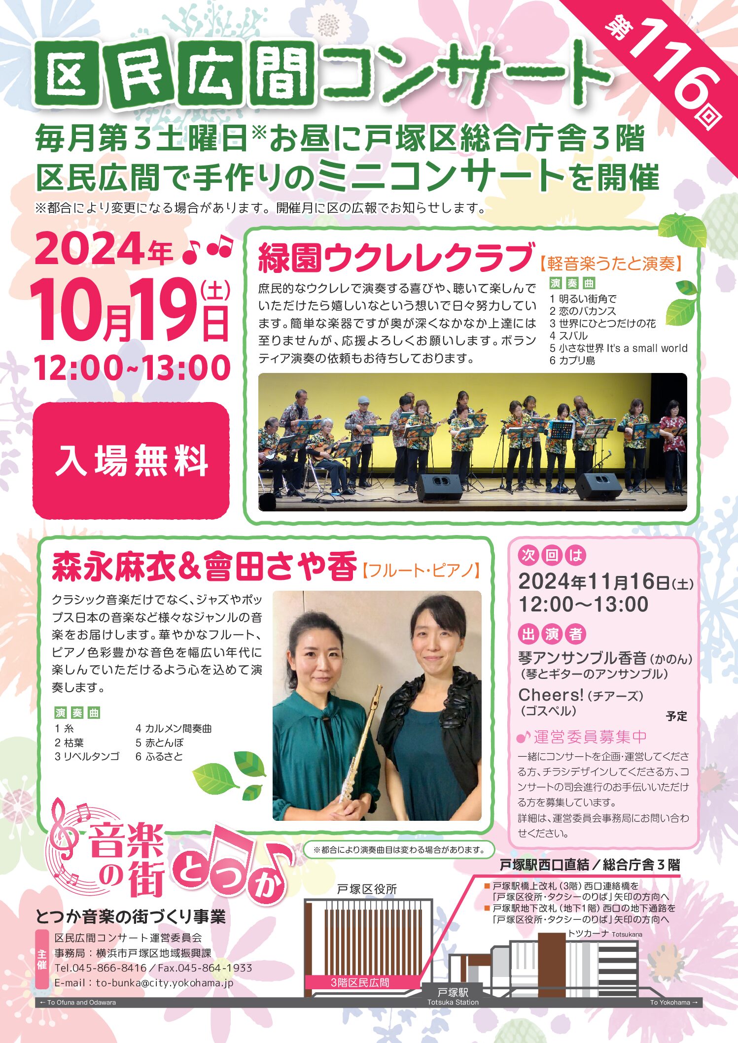 2024年10月19日 区民広間コンサート 2025 5/13 コンサート コンサート報告 ギャラリー その他 過去のコンサート 2024年10月19日(土)12:00開演 横浜市戸塚区役所総合庁舎にて区民広間コンサート このコンサートは衆議院選挙の期日前投票会場となり、残念ながら中止となりました。 またの機会皆様にお会いできます日を楽しみにしております! コンサート コンサート報告 ギャラリー その他 過去のコンサート